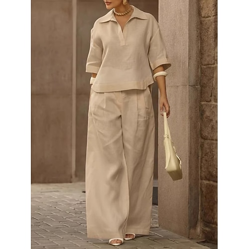 Per donna Set di biancheria in cotone Set da due pezzi Set di Pantaloni Manica Corta Manica 3/4 Colletto a Camicia Semplice Moda Streetwear Casuale Quotidiano All'aperto Blu Nero Bianco Primavera