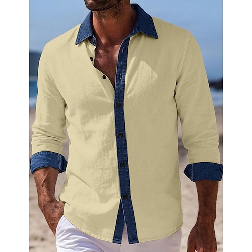 Per uomo Camicia Camicia di lino Camicia popover Camicia casual Camicia con Bottoni Camicia di cotone Patchwork Vacanza Camicia hawaiana Nero Bianco Cachi Verde militare Manica Lunga Colletto alla