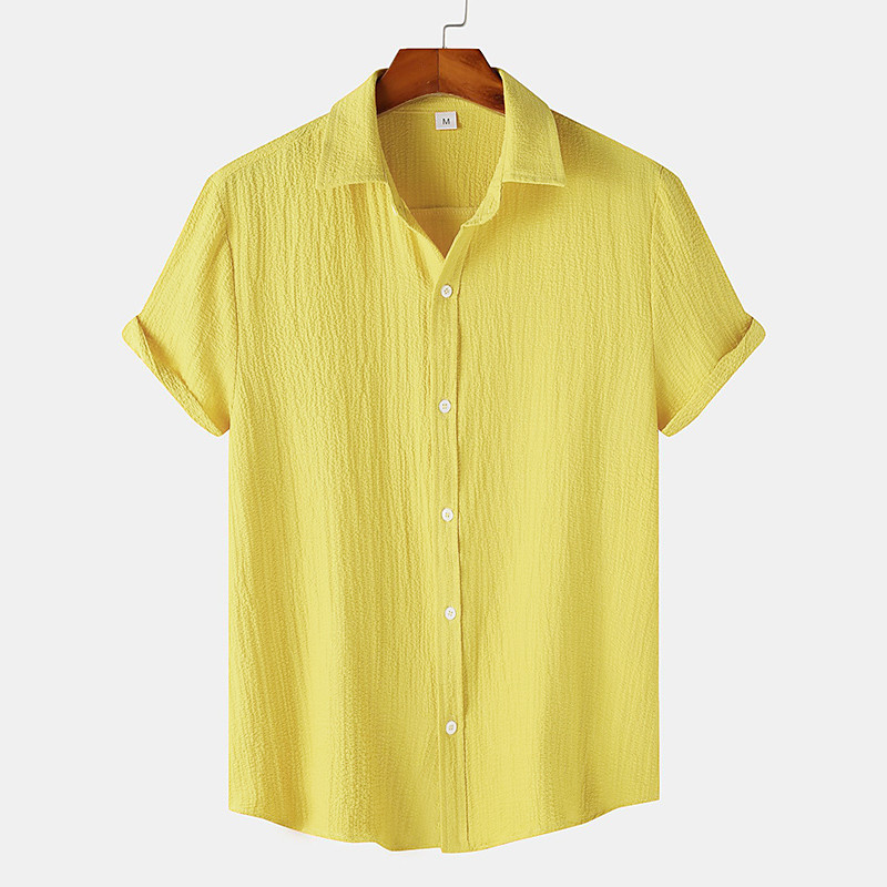 Men's Casual Shirt Black Yellow Pink Wine Blue Short Sleeve Plain Lapel Vacation Street Basic Clothing Apparel Polyester Fashion Leisure