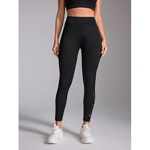 Per donna Pantaloni Leggings Moda Streetwear Essenziale Lunghezza intera Vita Alta Semplice Elastico in vita Rete Traspirabilità Confortevole Elasticizzato Quotidiano Palestra Yoga Nero Blu marino