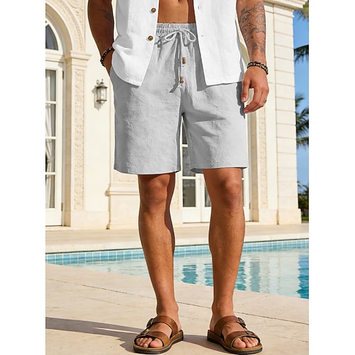 Per uomo Shorts Shorts di Lino Pantaloncini Estivi Tasca Elastico in vita Coulisse Semplice All'aperto Quotidiano Uscire Vacanza Casual Nero Bianco