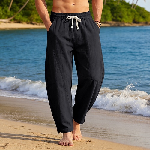 Per uomo Pantaloni di Lino Pantaloni Estivi Coulisse Elastico in vita Gamba Dritta Semplice Comodità Traspirante Lunghezza intera Casuale Quotidiano Spiaggia Vacanza Moda Blu Nero Inelastico