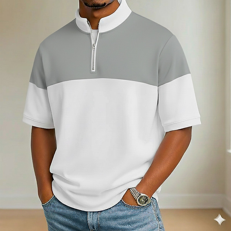 Men's Polo Shirts Casual Holiday Standing Collar Short Sleeve Basic Modern Plaid Color Block Color Block Buttons Blue Black Yellow Navy Blue Gray Polo Shirts