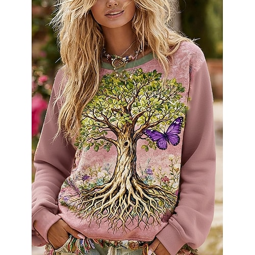 Per donna Felpa Pullover Floreale Plaid Casual Manica Lunga Girocollo Top Regolari Streetwear Abbigliamento Quotidiano Casuale Rosa Primavera Autunno Inverno