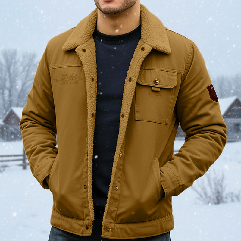Men's Fleece Jacket Cargo Jacket Chore Jacket Formal Home Windbreaker Durable Pocket Fleece Collar Fall Winter Solid Color Active Vintage Collar Regular Navy Blue Dark Green Khaki Jacket