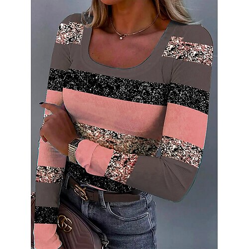 Per donna Tunica Grafico Geometrico A righe Vintage Moda Elegante Manica Lunga Collo quadrato Top Regolari Quotidiano Stampato Rosa Blu Rosa Primavera Autunno Inverno