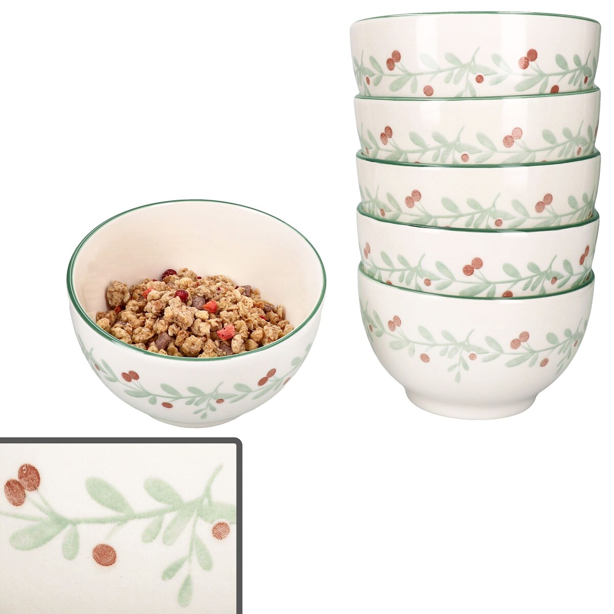 6x Holly Müsli-Schale Ø14,3cm 550ml Steingut 6 Personen Dessert-Bowl Weihnachten