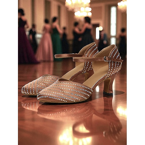 Scarpe da ballo da sala con strass da donna - tacchi professionali per ballo latino salsa tango con cinturino alla caviglia, eleganti scarpe da festa in stile Gatsby per donna