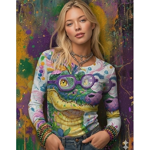 Carnevale Per donna Maglietta Grafico Vintage Moda Elegante Manica Lunga Girocollo Top Regolari Quotidiano Abbigliamento da sera Weekend Stampato Arcobaleno Primavera Autunno Inverno
