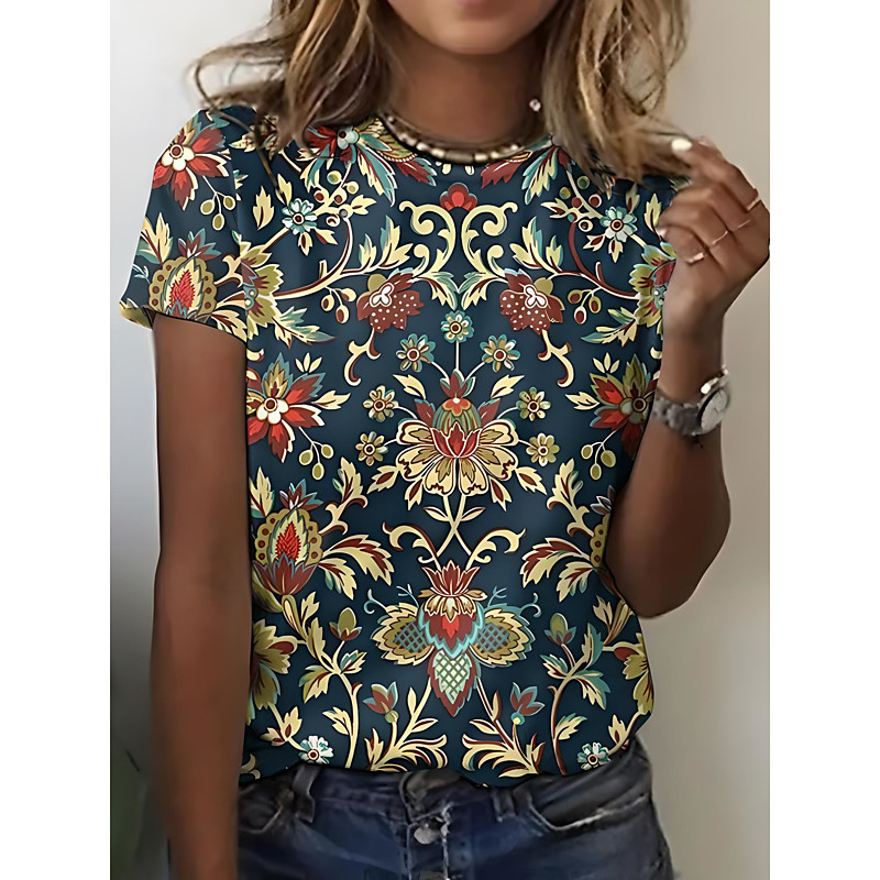 Women's T Shirt Graphic Paisley Vintage Stylish Casual Short Sleeve Crew Neck Regular Tops Daily Weekend Beach Wear Print BlackWhiteRed Black Pink Dark Green Brown Summer