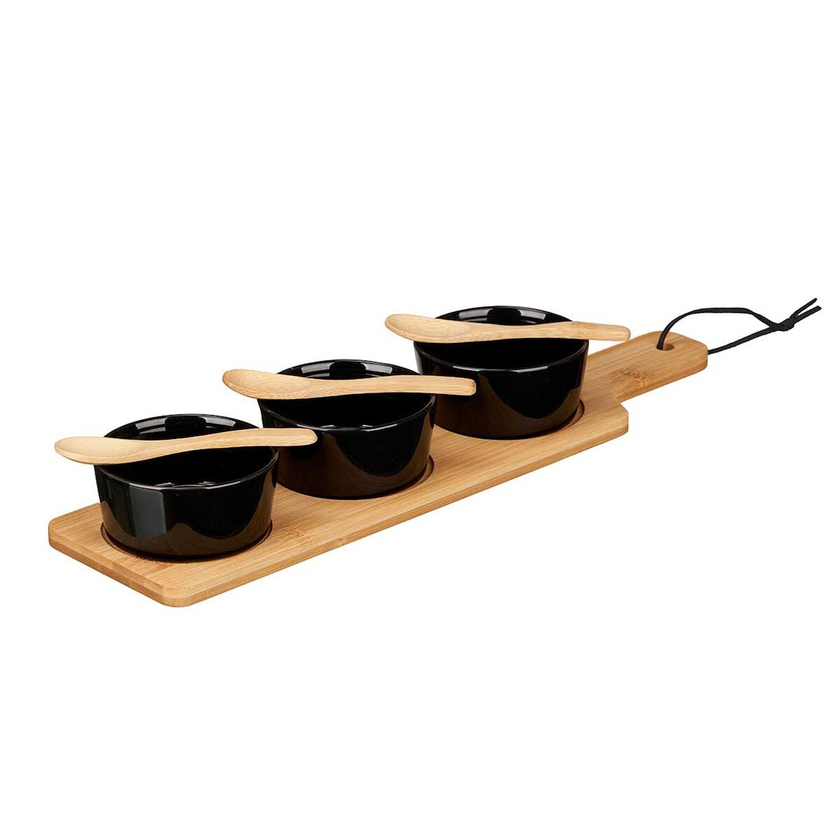 San Ignacio KINVARA- 3er-Set Keramikschüsseln mit Löffel und Tablett 12x45cm Schwarz