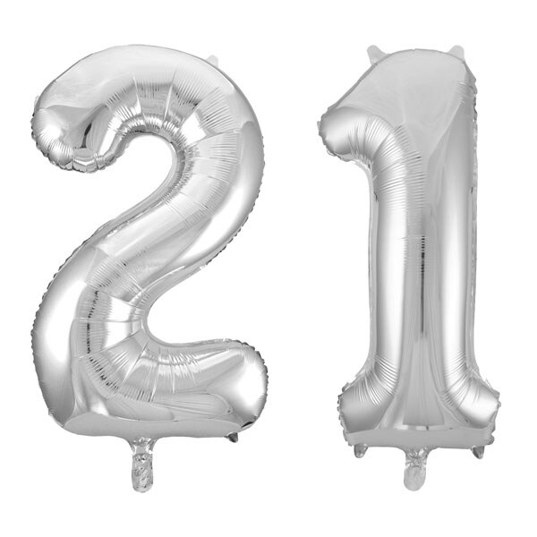 XL Folienballon silber Zahl 21