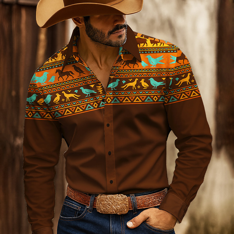 Men's Geometric Indian Culture Navajo Pattern Shirt Western Shirt Button Up Shirt Long Sleeve Vintage Retro Outdoor Casual WorkWear Spring Fall Turndown 3D Print Collared Shirts Blue Dark Red Green