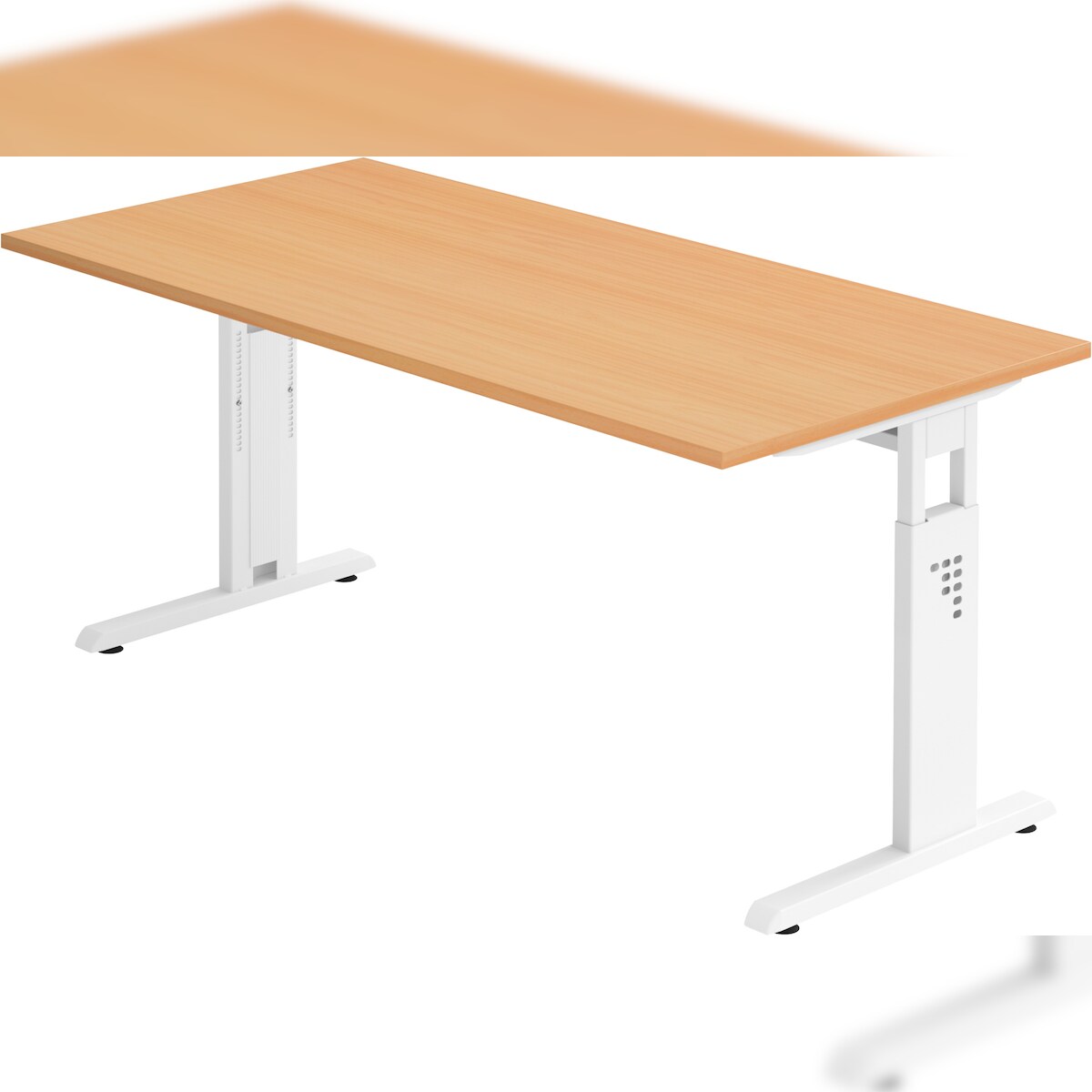 bümö höhenverstellbarer Schreibtisch O-Serie 160x80 cm in Buche, Gestell in weiß - PC Tisch für's Büro manuell höhenverstellbar, Computertisch