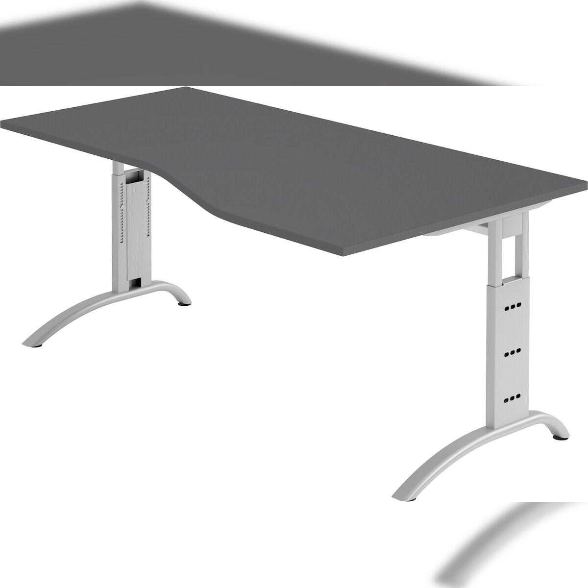 bümö manuell höhenverstellbarer Schreibtisch 180x100 cm in graphit - PC Tisch höhenverstellbar & groß, höhenverstellbarer Tisch Büro, großer