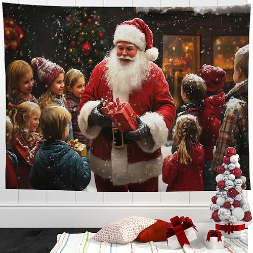 arazzo natalizio con dirigibile e nave da crociera – arazzo da parete festivo, arazzo decorativo con scena invernale innevata di Babbo Natale per la casa, camera da letto, soggiorno