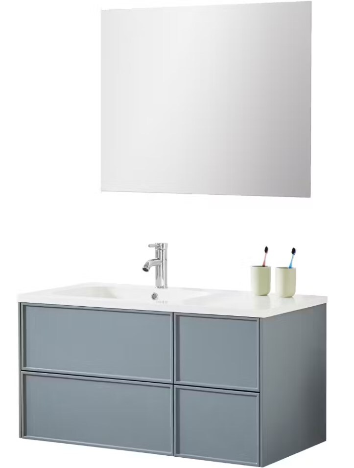 ZIK Mobile Hängender Waschtischunterschrank mit Spiegel und Keramikwaschbecken 4 platzsparende Schubladen 100 x 46 x 40 cm, modernes Design