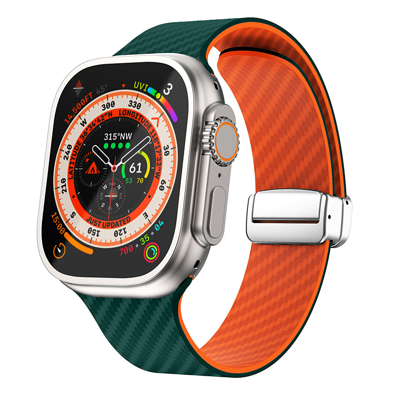 Sport Band Compatible with Apple Watch band 38mm 40mm 41mm 42mm 44mm 45mm 49mm Multilayer Magnetic Clasp Two Tone Silicone Carbon Fiber Strap Replacement Wristband for iwatch Ultra 3 2 Series 11 10 9