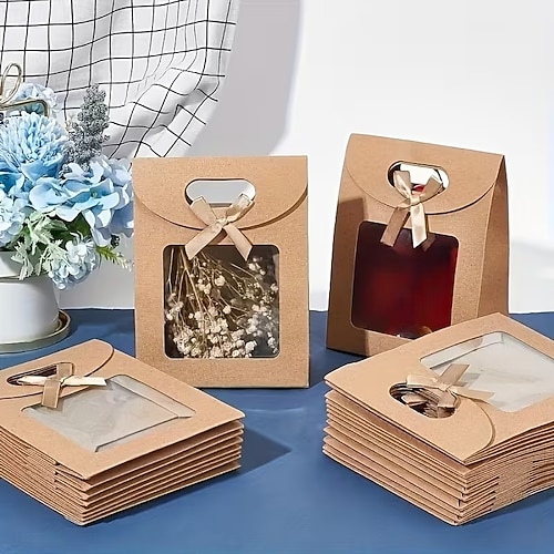 20/30 sacchetti regalo in carta kraft con fiocchi e finestre trasparenti multifunzionali, perfetti per la stagione delle lauree, San Valentino, matrimoni, Ringraziamento e regali per feste di Natale