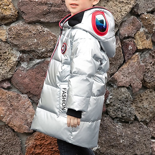Bambini Ragazzi Giacca in piuma Giacca da esterno Capispalla Lettera Manica Lunga Tasca Tenere al caldo Antivento Cappotto All'aperto Quotidiano Essenziale Blu Grigio Inverno Dai 4 anni in su