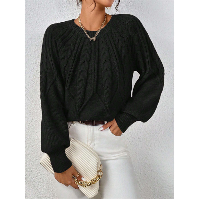 Women's Sweater Casual Soft Pure Color Cable Crew Neck Knitted Long Sleeve Regular Tops Knit Outdoor Daily Weekend Black White Fall Winter