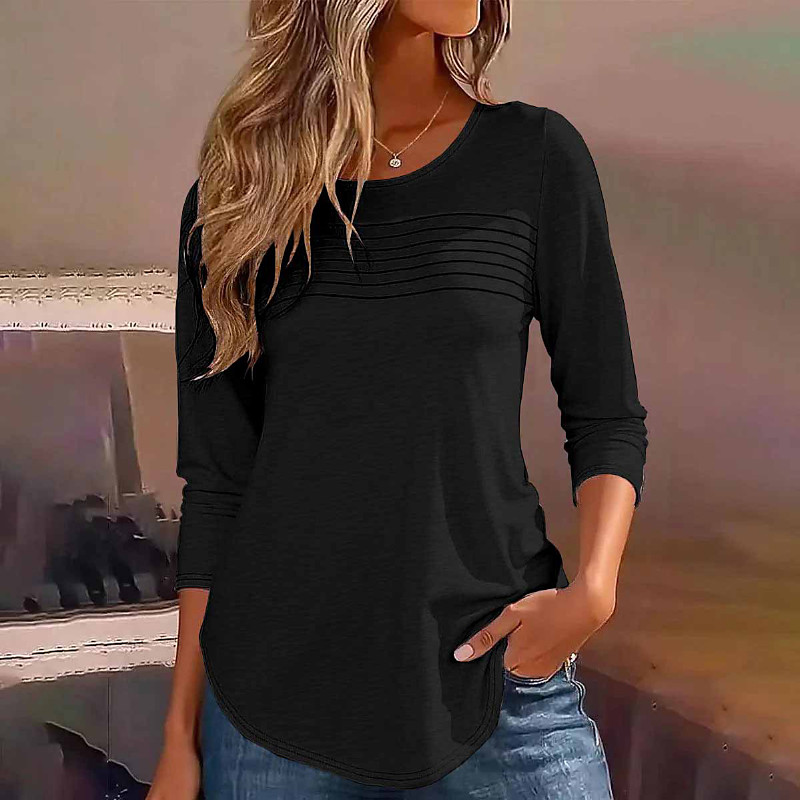Women's Texture Blouse Blouse Plain Modern Casual Long Sleeve Crew Neck Regular Tops Daily Holiday Going out Asymmetric Hem Black White Light Green Pink Dusty Rose Fall