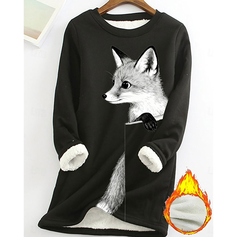 Women's Pullover Sweatshirt Animal Fashion Basic Casual Long Sleeve Crew Neck Long Tops Street Dailywear Casual Print Fleece Lined Black Yellow Pink Dark Pink Blue Fall Winter