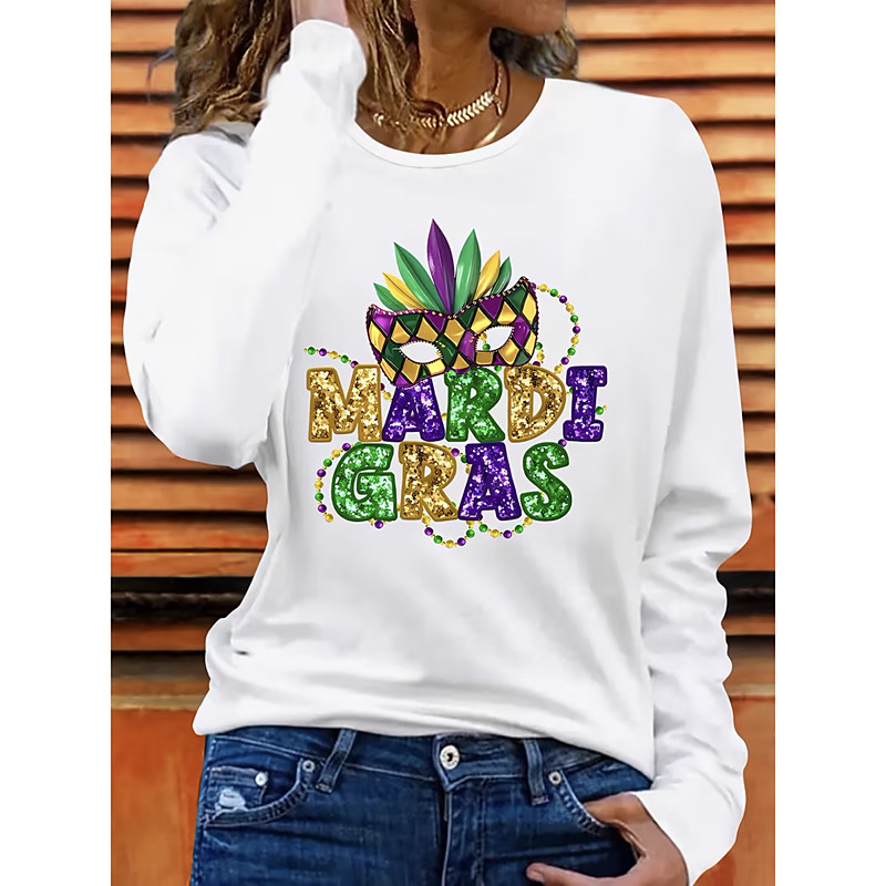 Carnival Women's T Shirt Graphic Fashion Stylish Classic Long Sleeve Crew Neck Round Neck Regular Tops Daily Weekend Print Black White Gray Summer Spring Fall