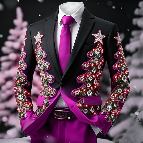 Natale Per uomo Albero di Natale Giacca blazer Confortevole Artistico Casual Abbigliamento da sera Quotidiano Festival Bottoni Stampato Primavera Autunno Inverno Dentellato Manica Lunga Rosso 1 Rosso