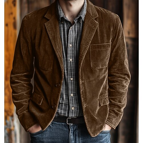 Per uomo Giacca in Velluto a Coste Colletto ad incastro Vintage Classico All'aperto Tinta unita Blazer Blu Nero Kaki Vestibilità su misura Monopetto Due Bottoni