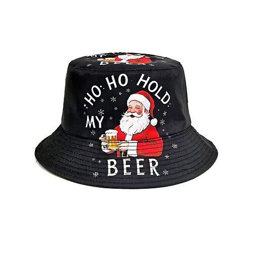 Cappello da pescatore natalizio da donna, in poliestere, con stampa di Babbo Natale e renne, copricapo per feste e celebrazioni invernali