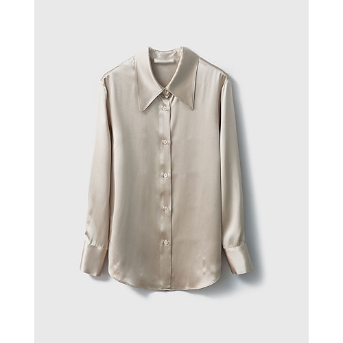 Camicia da donna in seta 40 momme, elegante camicetta in raso, semplice, elegante, alla moda, a maniche lunghe, colletto, top normali, quotidiano, lavoro, festa, bottoni, rosso champagne, primavera