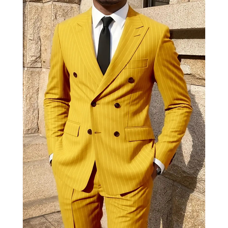 Men's Wedding Party Suits Dark Blue Business Formal Solid Colored Tailored Fit 2 Piece Double Breasted Six-buttons