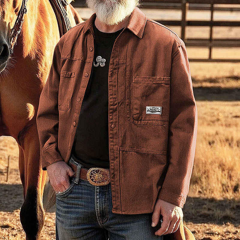 Men's Cowboy Work Shirt Western Shirt Cargo Shirt Long Sleeve Casual Tactical Sports Outdoor Going out Winter Spring Fall Turndown Print Army Green Khaki