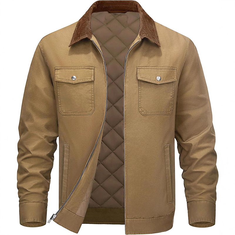 Men's Cotton Outdoor Jacket Shirt Jacket Cargo Jacket Padded Formal Home Pocket Plain Fall Autumn Solid Color Active Neutral Shirt Collar Short Black Navy Blue Brown Green Khaki Jacket