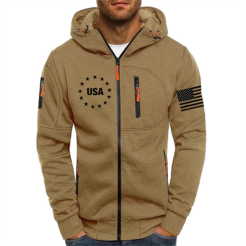 Men's Hoodie Full Zip Hoodie Wine Army Green Blue Green Khaki Hooded National Flag Sports Outdoor Daily Holiday Polyester Streetwear Basic Casual Spring Autumn / Fall Clothing Apparel Hoodies