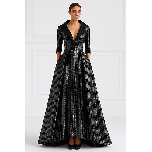 Per donna Abito da smoking Linea ad A Matrimonio Formale Ospite di nozze Strass Elegante Vintage Manica 3/4 Lunghezza al pavimento Revers dentellati Colletto a bavero Cerniera