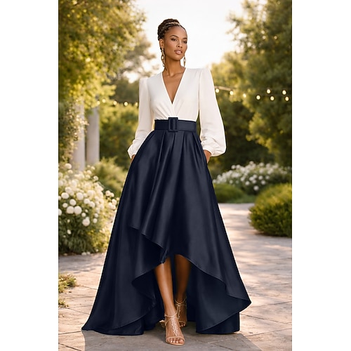 Linea ad A Asimmetrico Abiti da Cocktail Abito da Sera Da principessa Abito formale Elegante Monocolore Alto Basso Manica 3/4 Scollo a V Formale Ospite di nozze Raso con Arricciato