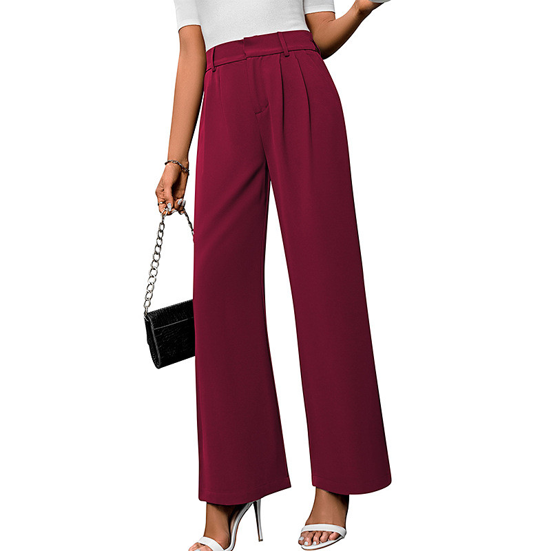 Women's Wide Leg Slacks Streetwear Casual Full Length Natural Plain Elastic Waist Comfortable Outdoor Vacation Holiday Maroon claret Ash Dark-Gray Fall Regular Fit