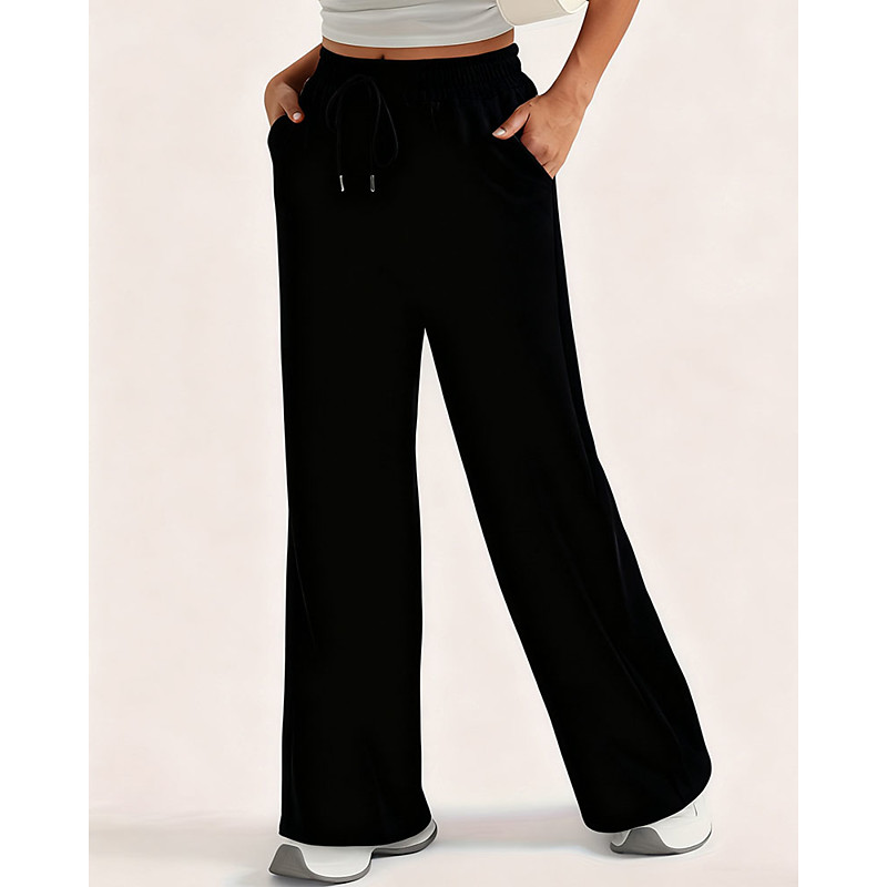 Women's Wide Leg Pants Trousers Casual Daily Long Plain Side Pockets Elastic Waistband Breathability Comfortable Inelastic Going out Weekend Black Pink Light Grey Dark Gray Spring Summer Regular Fit