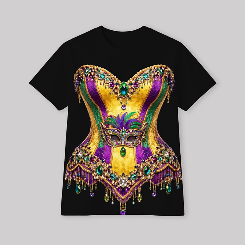 Mardi Gras 2026 T-shirt Sleeve T-shirt for Women's Adults' Hot Stamping for Carnival Mardi Gras Club Festival