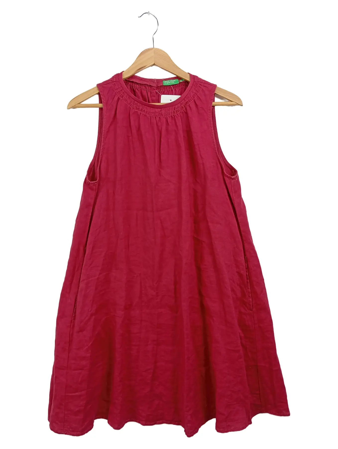 UNITED COLORS OF BENETTON Kleid Leinen rot 36 S A-Linie Mini