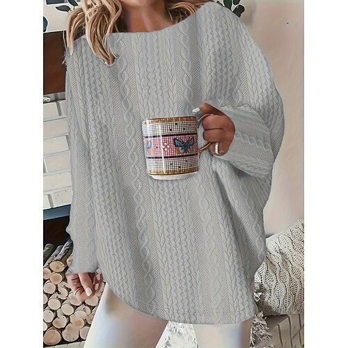 Per donna Felpa Casual Morbido Colore Puro A Coste Girocollo Lavorato a maglia Manica Lunga Top Regolari Maglia All'aperto Quotidiano Weekend Nero Bianco Autunno Inverno