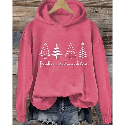 Natale Per donna Blusa Albero di Natale Casual Manica Lunga Con Cappuccio Top Regolari Quotidiano Ferie Uscire Stampato Nero Bianco Rosa Rosso Verde Autunno Inverno