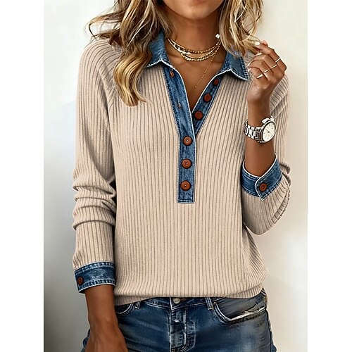 Per donna Taglie Forti Top estivi Tinta unica Casual Manica Lunga Colletto a Camicia Top Regolari Uscire Weekend Nero Giallo Verde militare Rosso Blu Estate