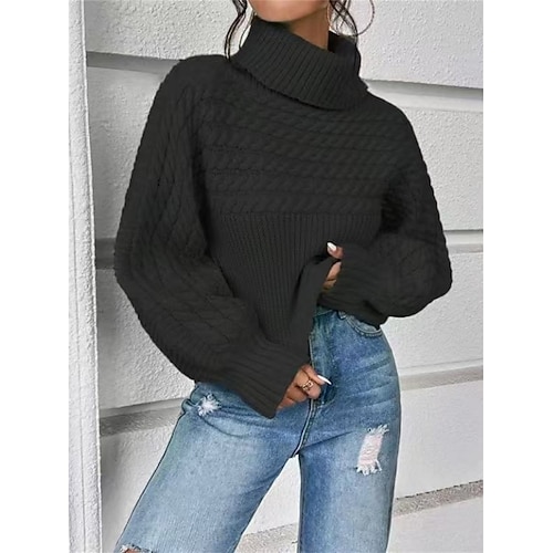 Per donna Felpa Casual Morbido Colore Puro A Coste Dolcevita Lavorato a maglia Manica Lunga Top Regolari Maglia All'aperto Quotidiano Weekend Nero Bianco Autunno Inverno