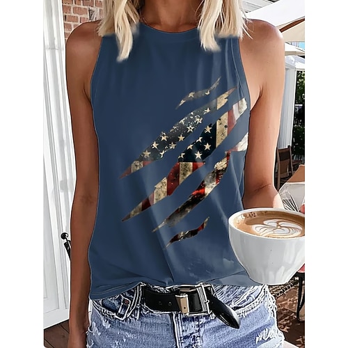 Giorno dell'Indipendenza Americana Per donna Maglietta Grafico Bandiera Vintage Tropicale Elegante Senza Maniche Girocollo Top Regolari Quotidiano Blu Nero Bianco Azzurro cielo Verde Estate Primavera