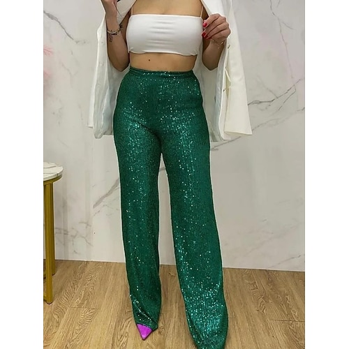 Per donna Pantaloni a gamba dritta Moda Streetwear Brillanti Lunghezza intera Vita Alta Semplice Luccicante Comodo Morbido Confortevole Inelastico All'aperto Feste Argento Nero Rosa Fucsia Estate