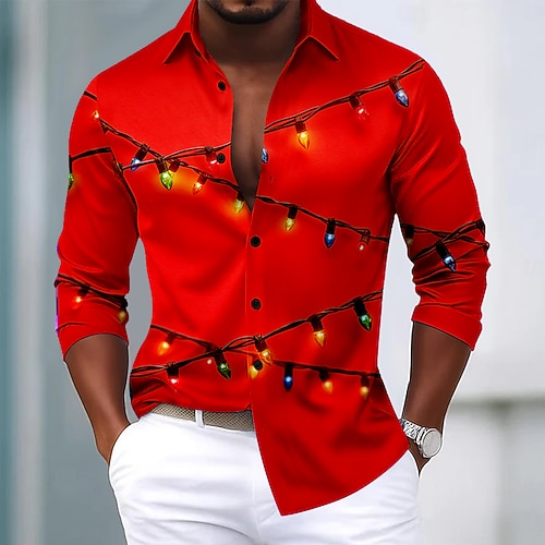Weihnachten Herren Farbverlauf Weihnachtslicht Hemd Satinhemd Kleidhemd Langarm Modisch lässig Party Ferien Sommer Frühling Herbst Umlegekragen 3D-Druck Hemden mit Knopfleiste Blau Blau 1# Rote