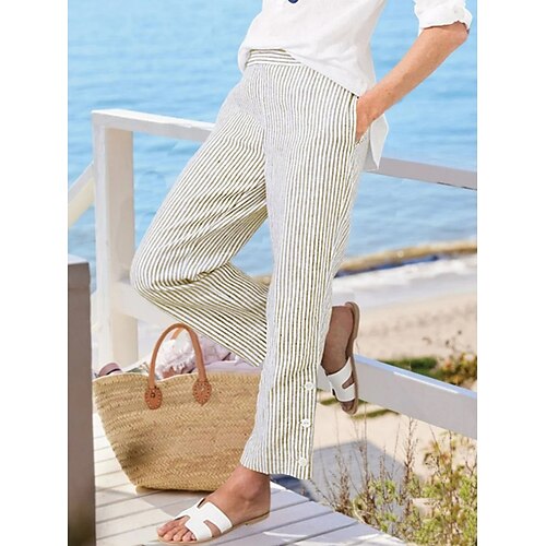 Per donna Chinos Dritto Vacanza Moda Streetwear Lunghezza intera Vita Alta A righe Tasca Comodo Morbido Confortevole Micro-elastico All'aperto Vacanza Streetwear Blu Esercito verde Nero Rosa Estate